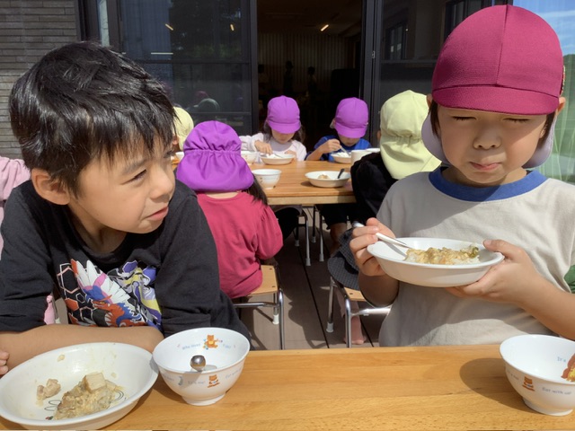 降園活動ではあんず・くるみ組みんなで『かくれんぼ』をしました。5つのグループに分かれ、グループで鬼役と隠れる役を交代でしました。「ここの方が見えないよ!」「動かないで!」と言って子ども達同士で真剣に隠れる場所を考えていました。鬼のグループの子ども達は見つけると「みーつけた!!」と言って見つけられたことをとても喜んでいました。