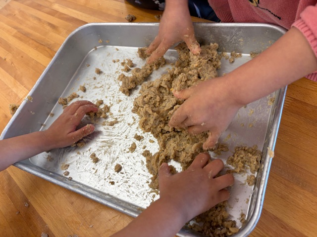 だし汁には、たっぷりの昆布とさば節を使いました。さば節は、ほのかな甘味とコクのある出汁が取れるのが特徴です。美味しく取れた出汁をうまく使い、きび糖、薄口醤油、味の母、酒、塩で味付けをして煮ました。出汁がよく染みて美味しく仕上がりましたが、苦手な子ども達もいたようです🥲「高野豆腐好き」「おかわりしたよ」とたくさんあったおかわりはなくなりました。