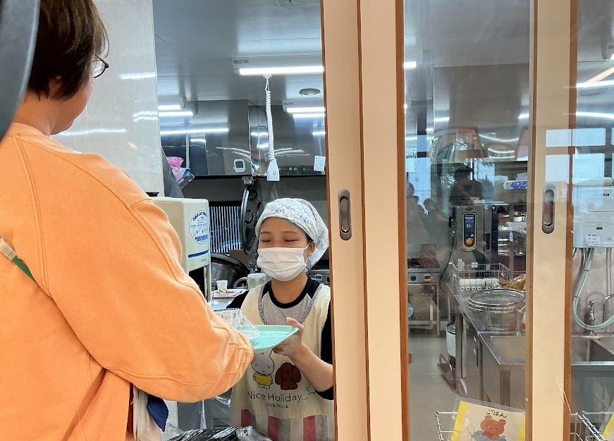 ランチルームには、ランチルームリーダーという職員がおり、アレルギー対応が必要なお子様がランチルームに来たときは、ランチルームリーダーが専用トレイを受け取りに給食室の窓口に来ます。