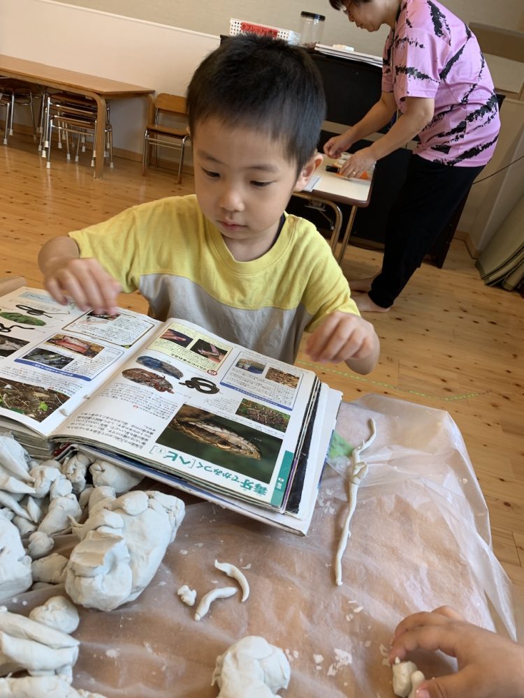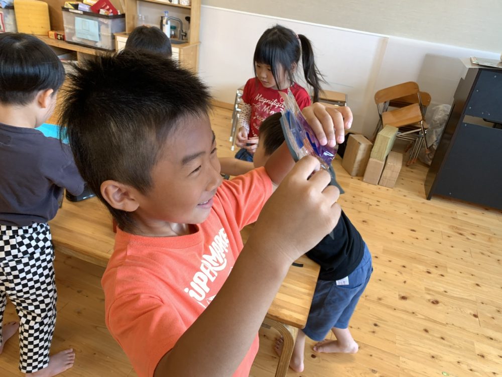 夏の間、クラスで蝶々を育てた経験から昆虫や生き物に興味を持った子は、なじみのある素材を使って自分の好きな生き物を作ってみたい、と計画中です。