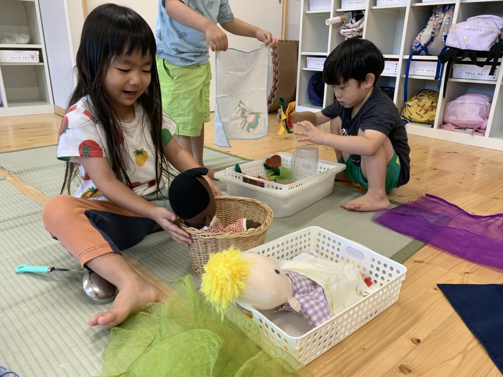 特に子どもたちの関心が大きい①おうちの世界 ②生き物の世界 ③お祭りの世界 の3つのグループに分かれ、子どもたちと活動しているところです。
