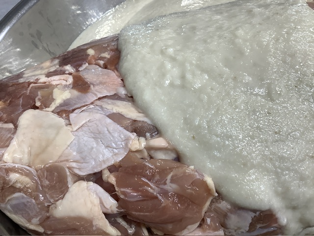 今日は、塩麴にすりおろした生姜とにんにくを加えました。