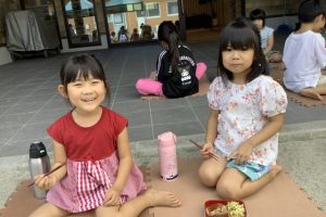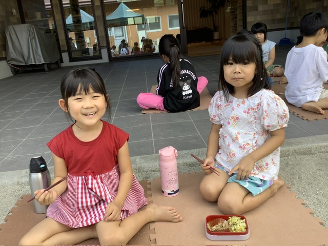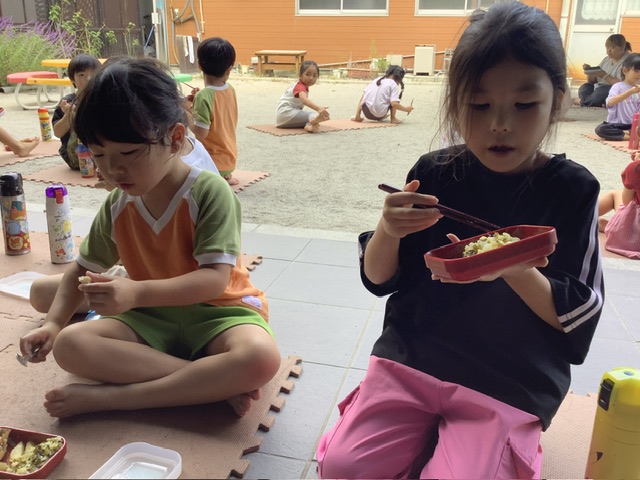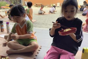 クラスで食べたり、テラスで食べたり、のはら園で食べるなどいつもと環境を変えて給食の時間を楽しんでいました。