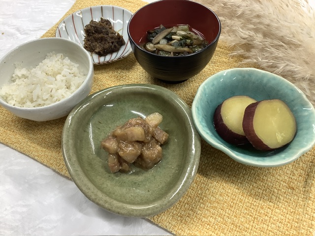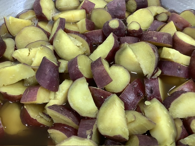 さつまいもの甘煮は、鹿児島県産のさつまいもを使用しました。