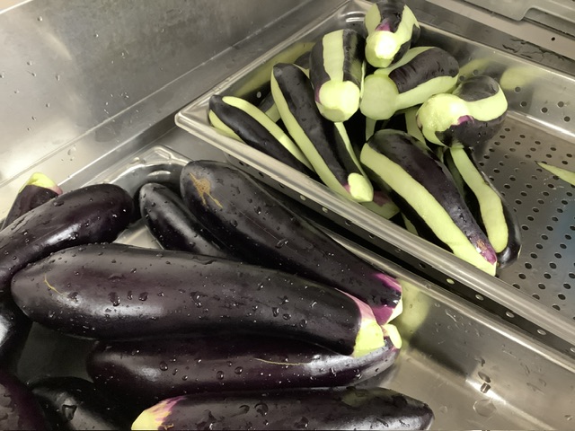 小さく刻んでスチームにかけ、梅酢やゆかりと和えれば【即席なす皮の柴漬け】の完成です。できる量は少しなので、おかわりコーナーに置いておきましたが、あっという間になくなっていました。廃棄がなるべく少なくなるように努力しています。