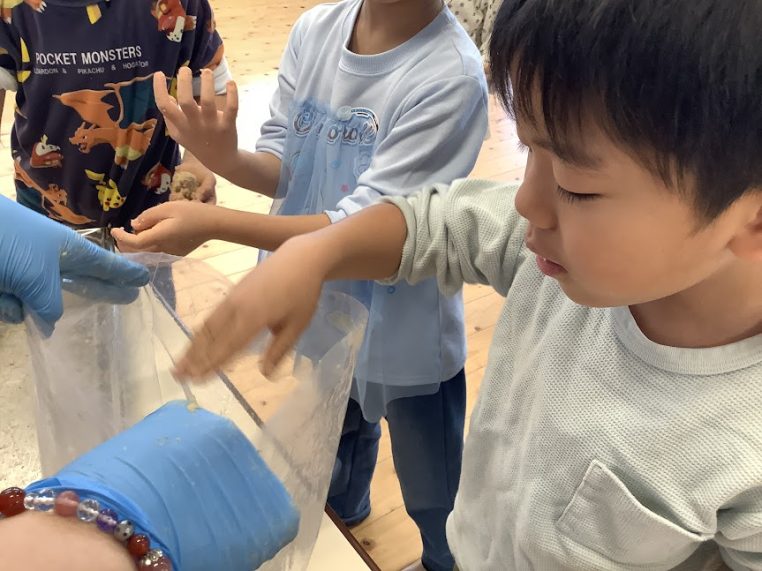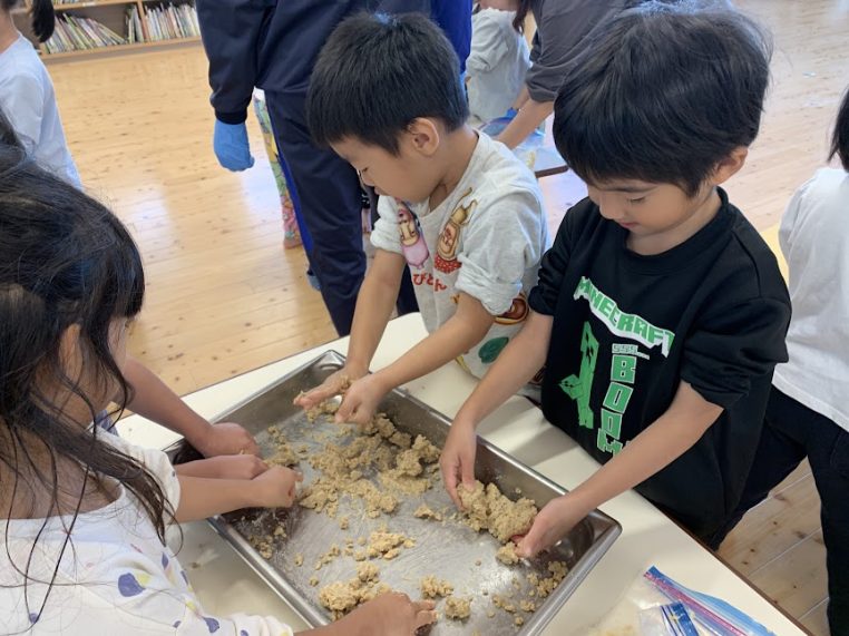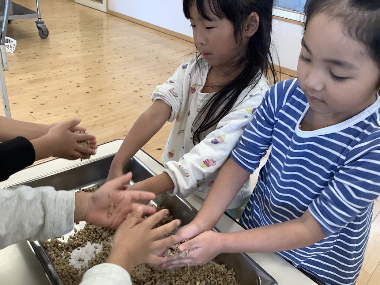 ”味噌の匂いがする” ”これ、給食のみそ汁の底に入っているのと同じだ!” ”(塩が)ザラザラする” ”綺麗な丸い玉ができたよ”
