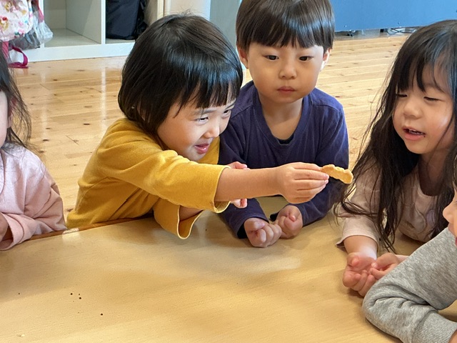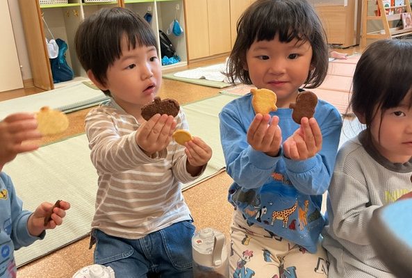 「これはなんの形かな?」「ココア味がすき!」など友達と見せ合いながら、会話も楽しんでいましたよ✨