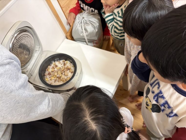 クラスの部屋で炊飯器を使って炊くことで、炊くときの湯気や香りなどに気が付く子もいましたよ。