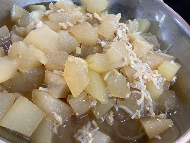 ⭐新鮮な冬瓜をたくさんいただいたため、今日は切干大根の煮物から冬瓜の煮物に変更しました。