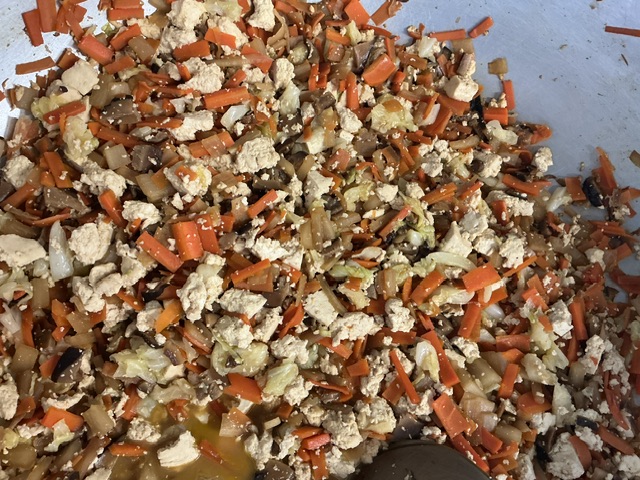 炒り豆腐の豆腐は、蒸すことで水切りしてから炒めます。余分な水分をのぞくことで仕上がりが水っぽくならないようにひと手間かけています。