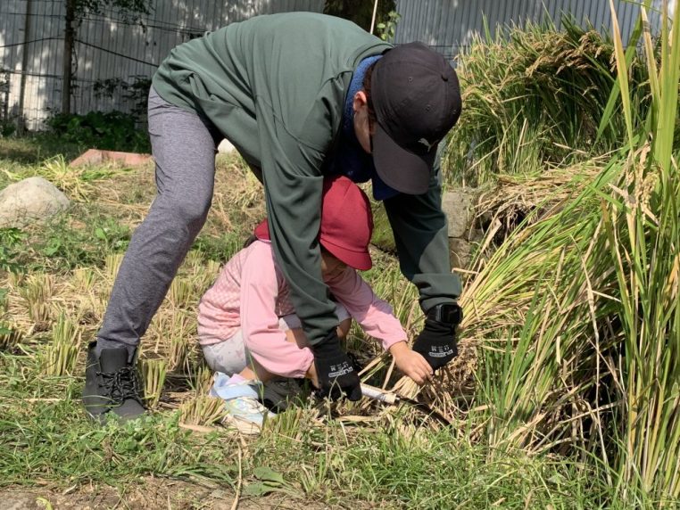 事前に、絵本やイラストを使って、稲刈りはどうやってするのか、鎌を使って刈ることを伝えたことで、子ども達も意欲をもって稲刈りに参加することができました。