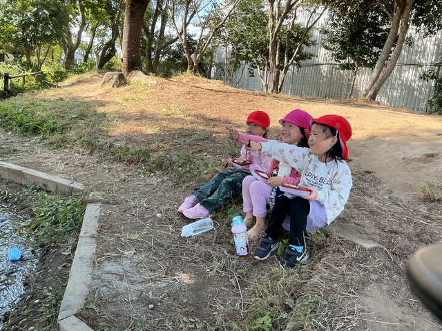 のはら園の色々なところで、空や花を見たり、風や水の音を聞いたりしながらいつもと違う給食の時間を過ごしました♪