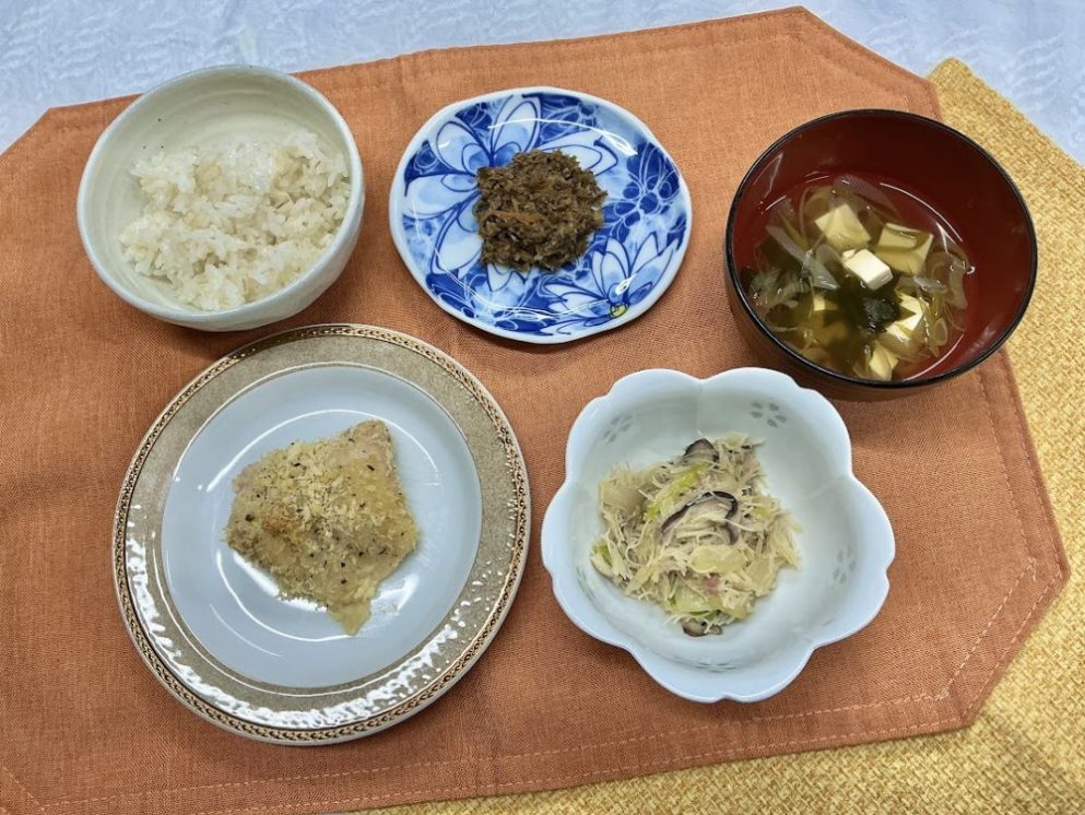 鶏肉の香草焼きに使ったのは、香りのよいバジルです。にんにくや塩に漬け込んで下味を付けた鶏肉に、パン粉、粉チーズ、バジル、少量のオリーブオイルを混ぜたものをまぶして焼き上げました。