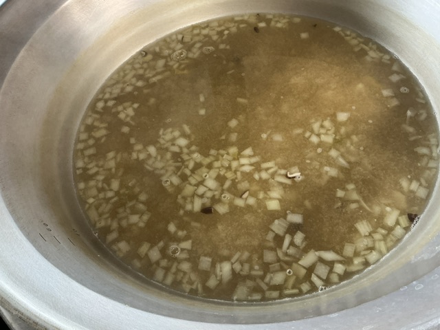 五目みそ汁には、大根・白菜・しいたけ・厚揚げ・有機農家35farmの里芋が入りました。