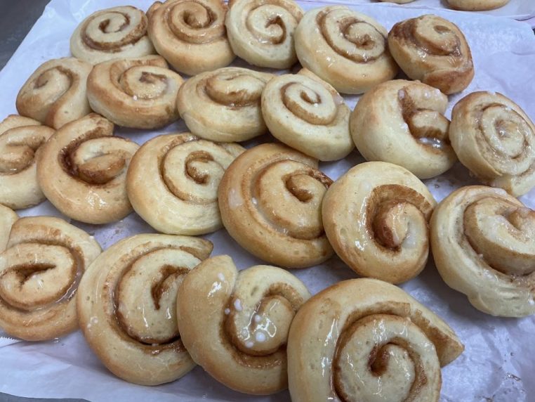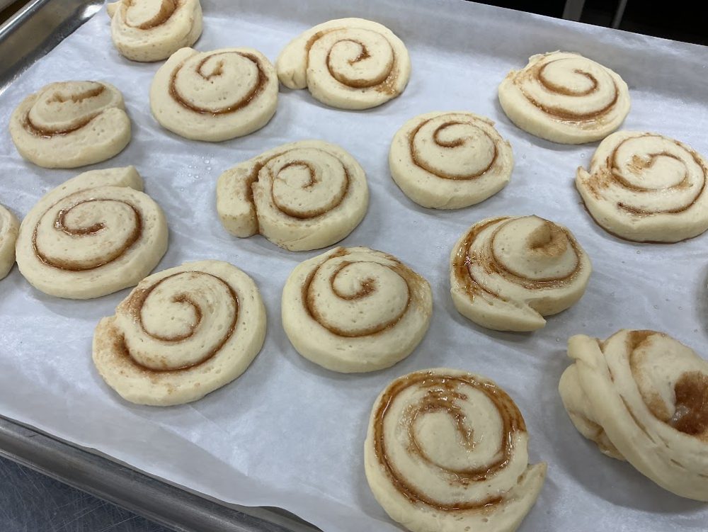 シナモンシュガーをたっぷりのせた後に巻いて切った断面がとても綺麗に仕上がりました。