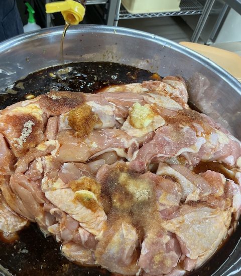 鶏肉は酢と一緒に漬け込んだ効果で柔らかくなり、ゴマ油やにんにく、生姜の香りもよく焼きあがりました。