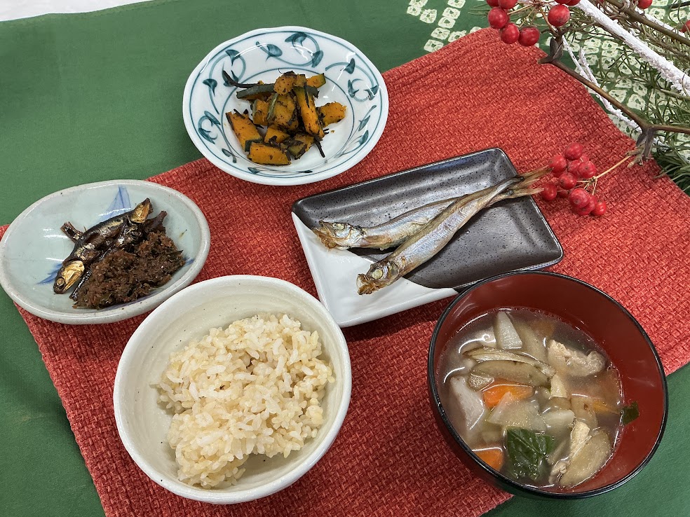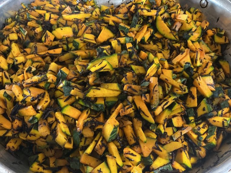 また、「ん」がつく食べ物を食べると運気が上がると言われています。代表的なのは「なんきん(かぼちゃ)」で、れんこん、にんじん、ぎんなん、きんかん、かんてん、うどんなども挙げられます。また、邪気払いのために小豆(小豆粥やいとこ煮)を食べる習慣もあります。今日はなんきん(かぼちゃ)を使いましたよ。
