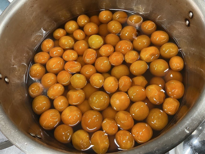 甘露煮にした金柑は張りがあり、煮ることで艶が増して美味しく仕上がりました。