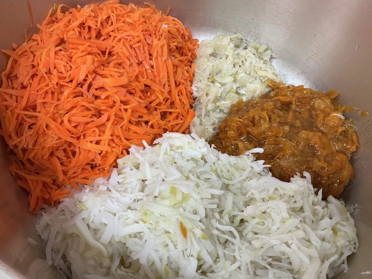 今日の離乳食は、白身魚・さつま芋・人参・ブロッコリー・大根を使用しました。