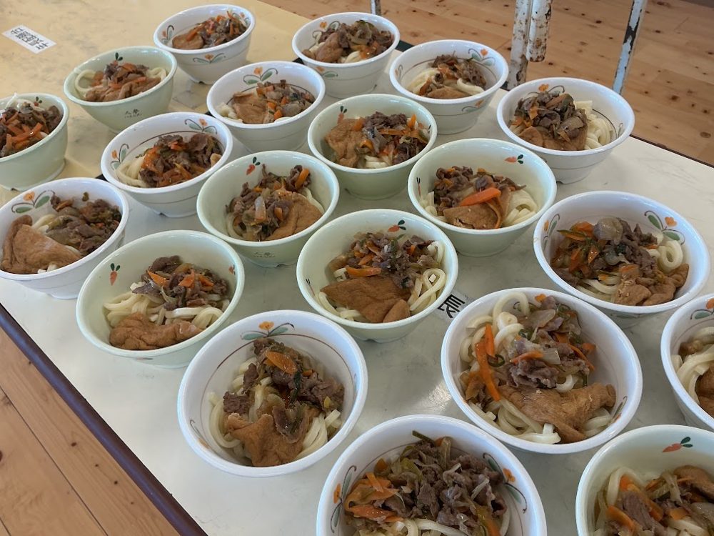 今年最後の給食は年越しうどんでした。年越しうどんには、うどんが太く長いことから「太く長く幸せに過ごせますように」という願いが込められており、特に香川県でよく食べられているのだそうです。