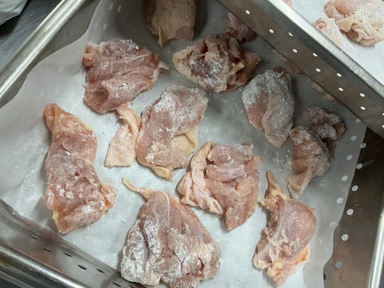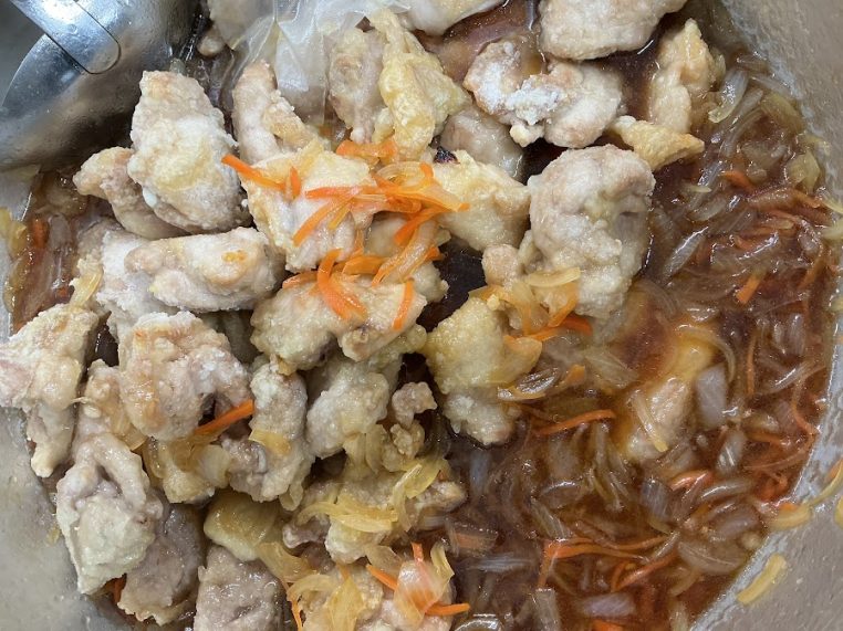 鶏肉の南蛮漬けの鶏肉は、過去に提供した唐揚げ風の作り方を応用しました。