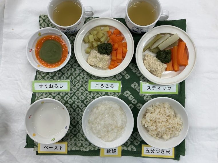 今日の離乳食は、鶏肉・ほうれん草・さつま芋・人参を使用しました。