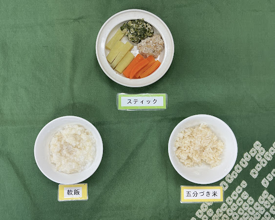 幼児食の子どもに寄せるために、味付けは洋風にし、たんぱく質は肉と麩(小麦)を刻んで提供しました。
