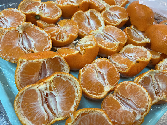 ※米を仕入れている椎木ライスセンターからみかんを頂戴したため、15時のおやつを無添加おかしから、みかんに変更しました。