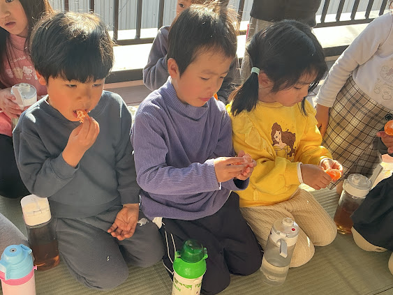おやつは、毎月米を仕入れている椎木ライスセンターのみかんでした。甘く瑞々しいみかんで、子ども達も嬉しそうでした。
