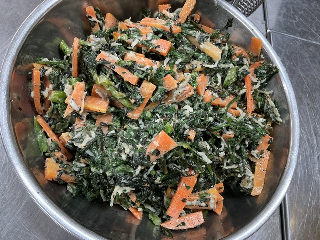 春菊のサラダには、有機農家の35farmから仕入れた春菊を使用しました。