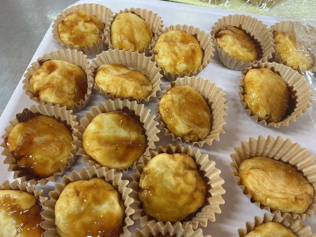 蒸したじゃがいもを潰して、片栗粉を混ぜて丸く成形し、スチームコンベクションで焼き、仕上げにみたらし餡をかけました。
