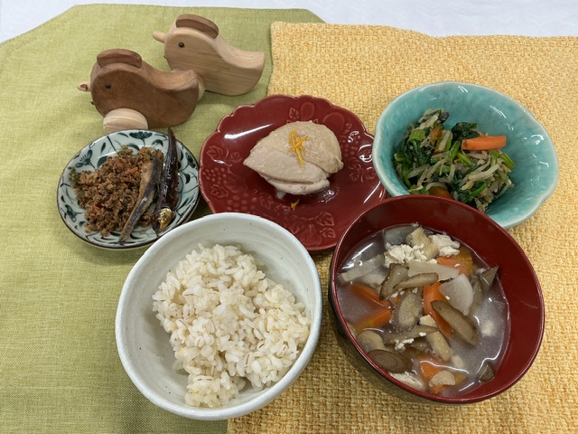 ごま油で焼いたじゃこと、錦ヶ丘手作りの豆乳マヨネーズで和えましたよ😊