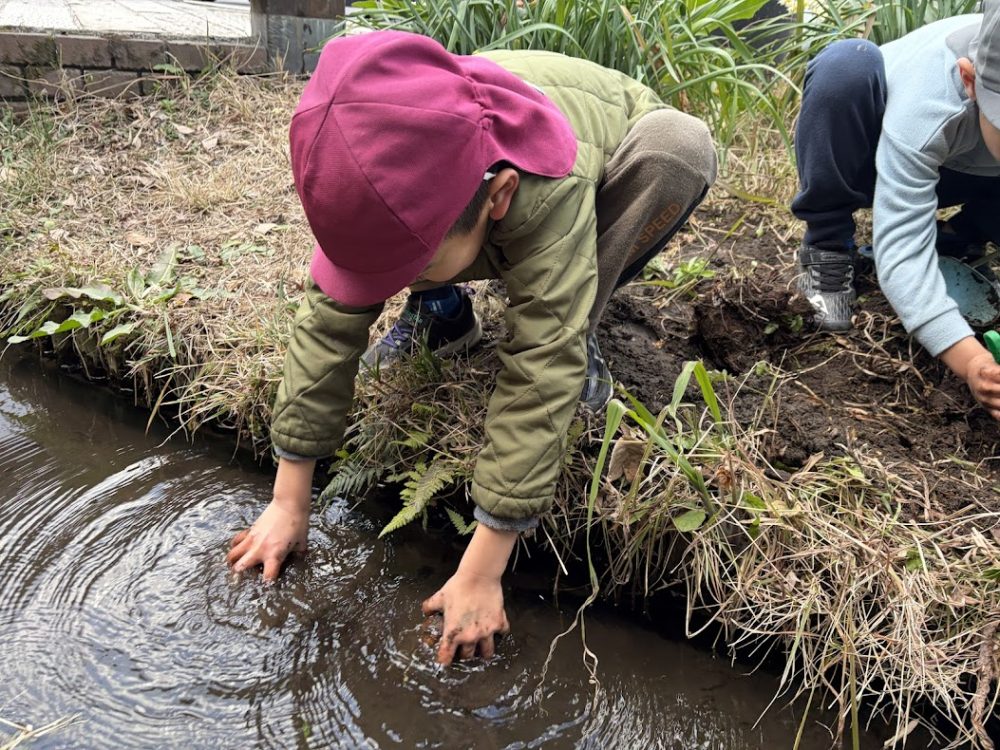 土が多く付いていて芋が見えないと、川で洗っていました。「みずがつめたい~!」といいながらも芋がでてくるたびに大喜びで水に浸けていました。