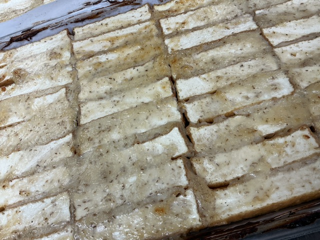 今日は、自家製の豆乳マヨネーズと味噌を混ぜて厚揚げに塗りました。