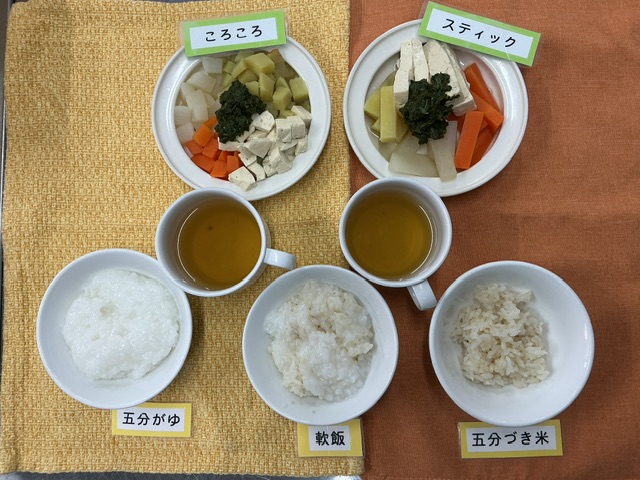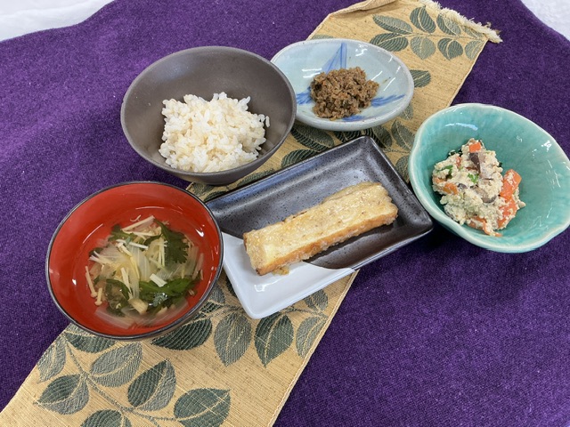 今日のおぼろ汁には、おぼろ豆腐の代わりに大根のすりおろしを入れて朧気な様子をあらわしました。大根の甘みが広がるお汁に仕上がりました。