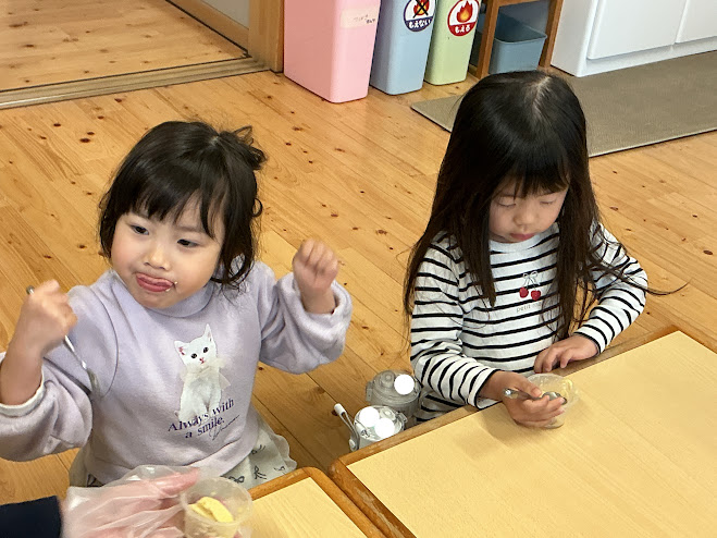 見た目から最初は「いらない」と言っていた子も一口食べて「美味しい」と思ってくれたようで、最後は完食していました💕