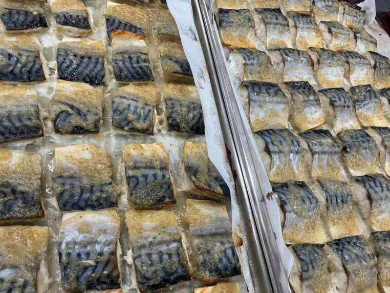 鯖のみそ焼きは、味の母やきび糖で甘めに味付けした味噌ダレを鯖に塗って焼きました。