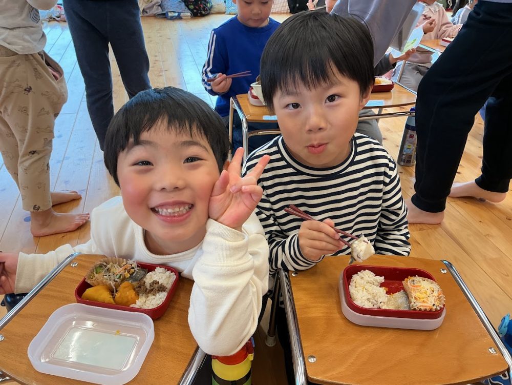 どの学年も進級を見据えて、4月から過ごす部屋やランチルームで食べていました。