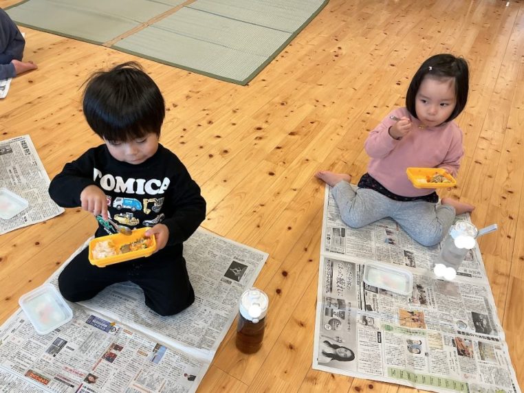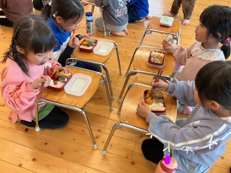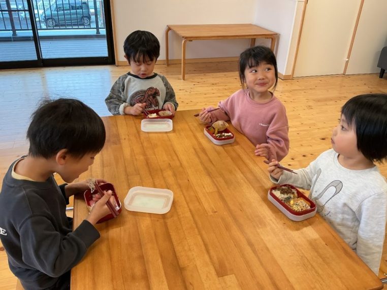 お弁当箱やワンプレート皿を使って、外やテラスで食べる等、普段と少し環境を変えることでより楽しい食事の時間となるよう月に1~2回取り入れている日です。