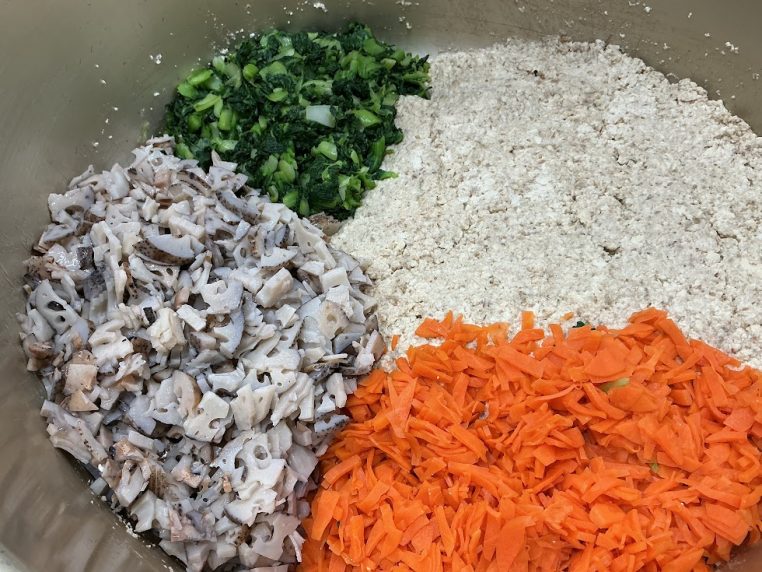 冬野菜の白和えは、れんこん・人参・35farmのターサイが入りました。