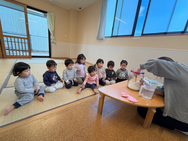 今日は、ましゅまろ(0.1歳児)で塩麴を仕込みました。