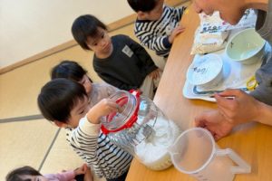 酢飯を甘く作ることは簡単ですが【本物の味】を給食でも提供するために、両園の給食室メンバーで何度も酢飯に使う調味料の割合を検討してきました。