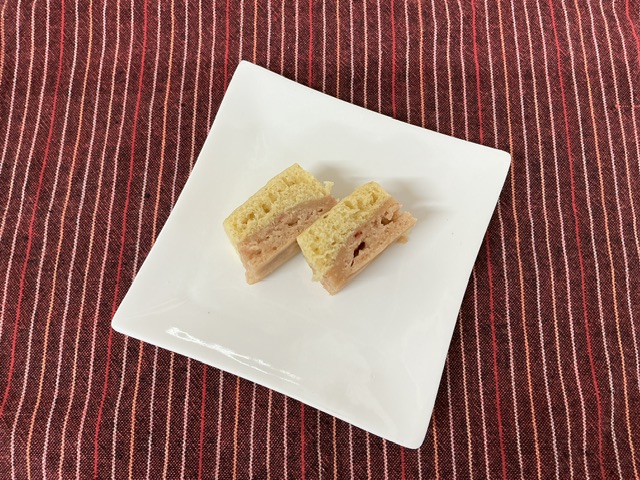 ひな祭りケーキは、いちごジャムで色付けした生地とプレーン生地を二層にして蒸しパンにしました。