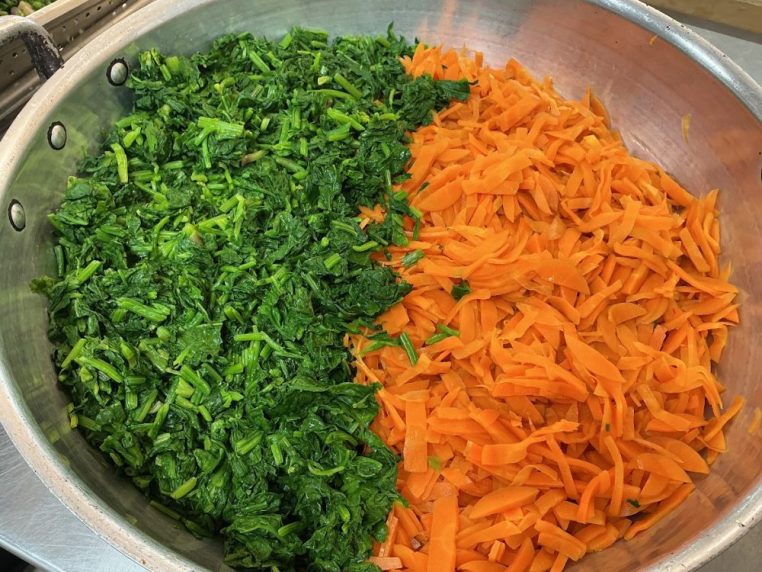保護者から頂戴した橙果汁で作った橙酢味噌とほうれん草の味で美味しく仕上がりましたよ。
