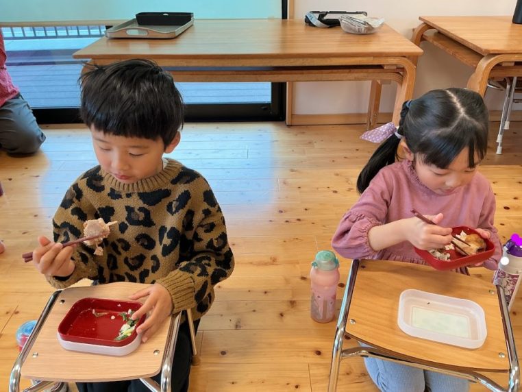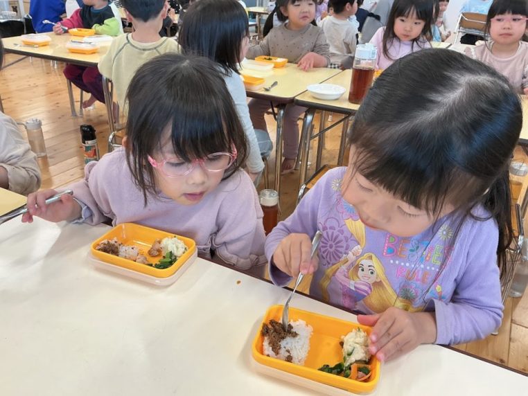 蓋を開けると、”わぁ!美味しそう!”という声が聞こえてきて、ランチボックスの日は特におかずのレイアウトを考えながら詰めているので、給食室も嬉しくなりましたよ💓