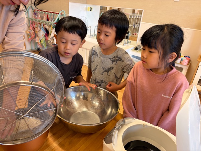 年中組(4歳児)で、毎週木曜日に米炊きに挑戦しています。