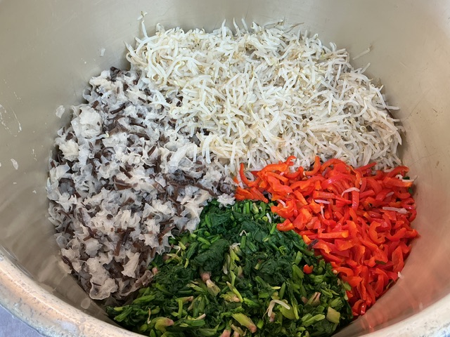白きくらげの酢の物には、一度下味を付けたきくらげを使用しています。