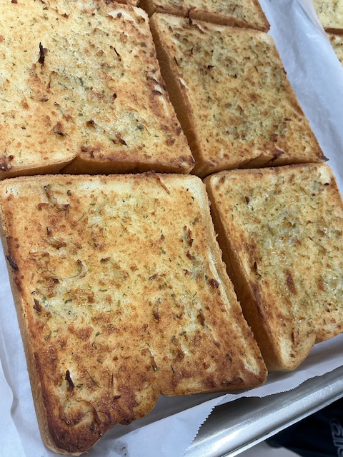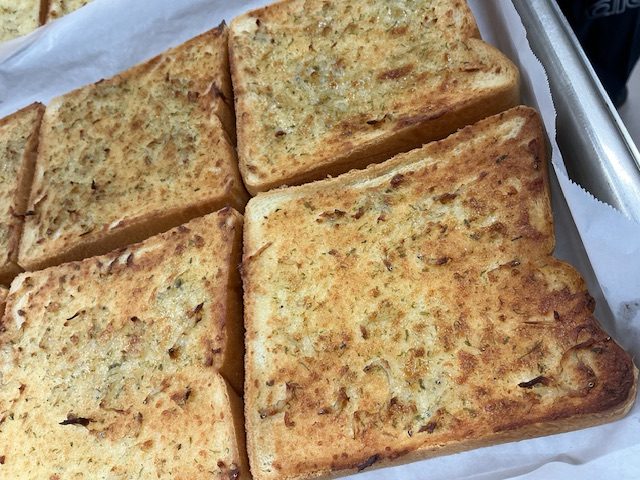 じゃこトーストには、手作り豆乳マヨネーズ、しらす、粉チーズ、青のりが入ります。