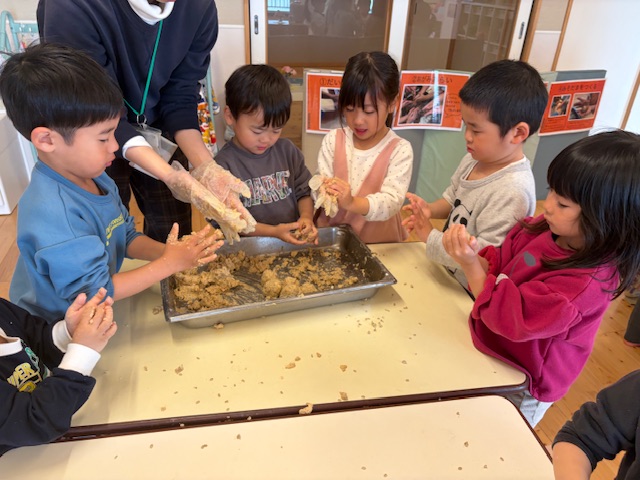 独特の感触が苦手な子もいましたが、見るだけでも楽しい味噌作りになりました💓