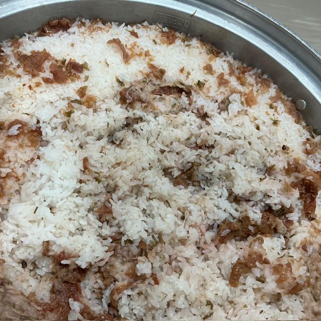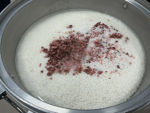 桜ごはんには、桜の花びらの塩漬けを刻んで入れました。